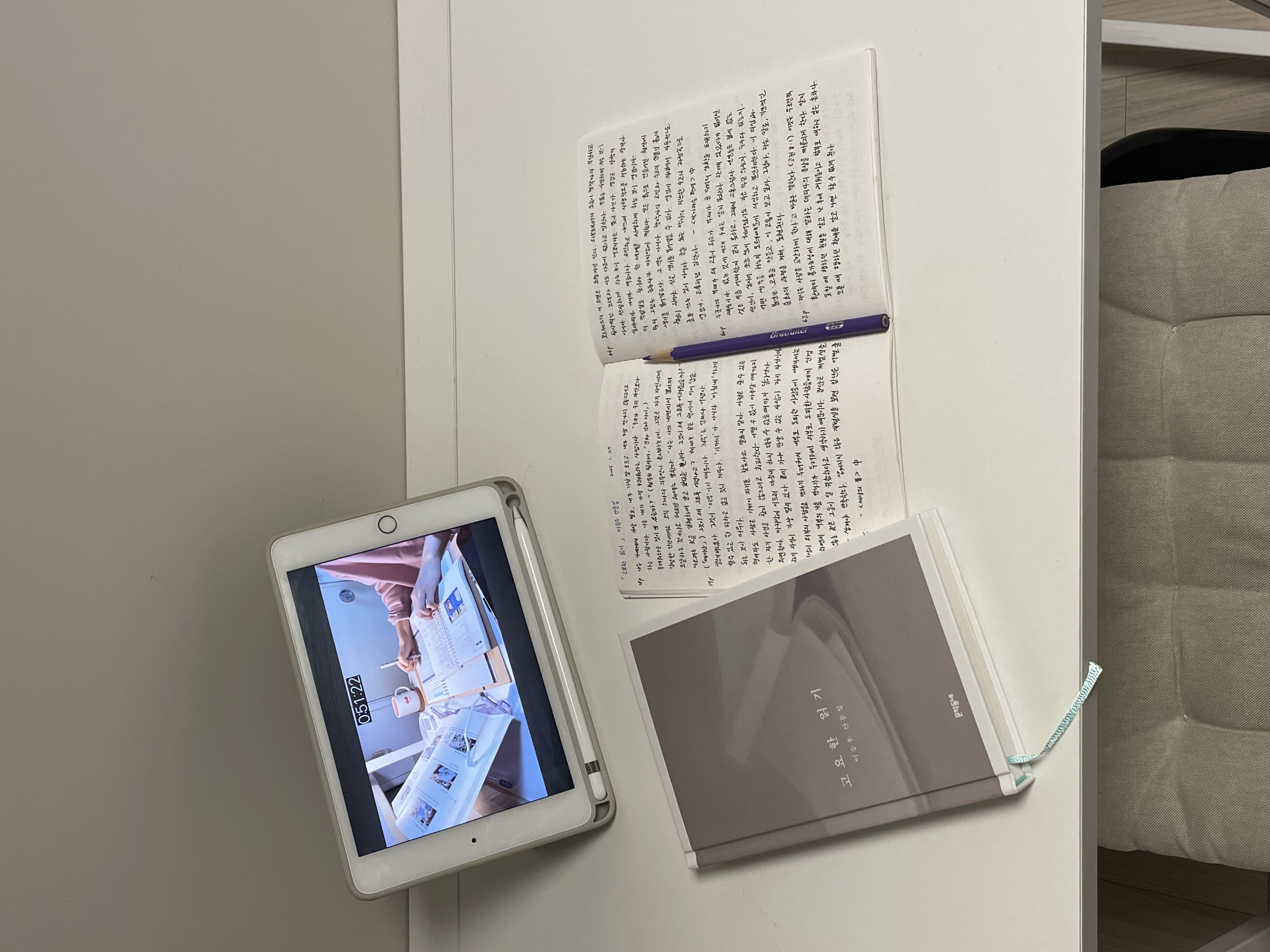 이번에는 배경음악 없이 장작 타는 소리와 필기 소리만 담긴 스터디윗미 영상을 틀었어요. 평소엔 적막 속에서 독서를 했는데, 영상과 함께하니 몰입감이 확실히 달랐어요. 조용한데도 누군가 함께 독서하는 느낌이 들면서 집중력이 한층 올라간 기분이랄까요?