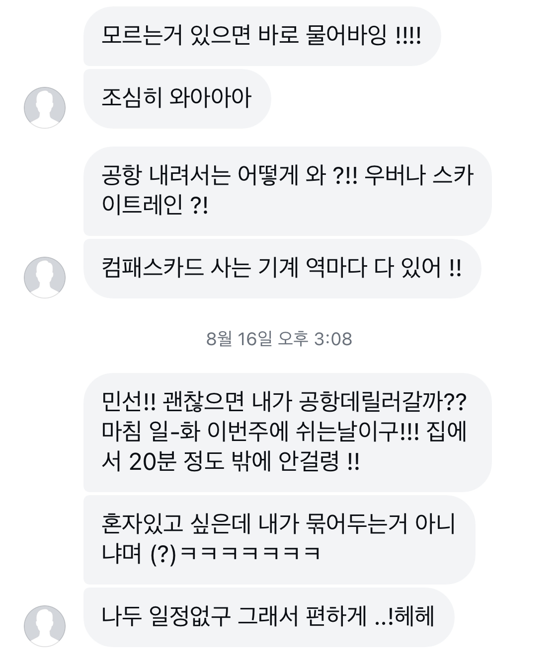 혼자 낯선 공항에 도착해 숙소까지 가는 길을 헤맬 저를 걱정하면서도, 혹시 불편하지는 않을까 한 번 더 확인하는 그 마음이 따뜻한 배려로 다가왔어요. 🥰 저는 감동의 눈물 한 방울 또르륵… 흘리며 수많은 하트와 함께 “무조건 예스!”를 외쳤답니다.