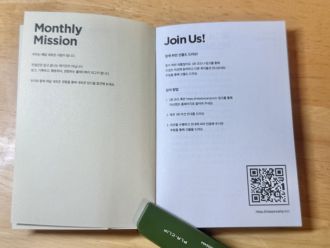 저는 ‘미션 코너’를 가장 좋아해요. 이 부분이야말로 컨셉진의 핵심이자 정수라고 생각하거든요. 컨셉진의 슬로건이 “우리는 매달 새로운 사람이 됩니다”잖아요. 그 말처럼 새로운 사람이 될 수 있도록 도와주는 코너가 미션 코너라서 가장 애정합니다.
