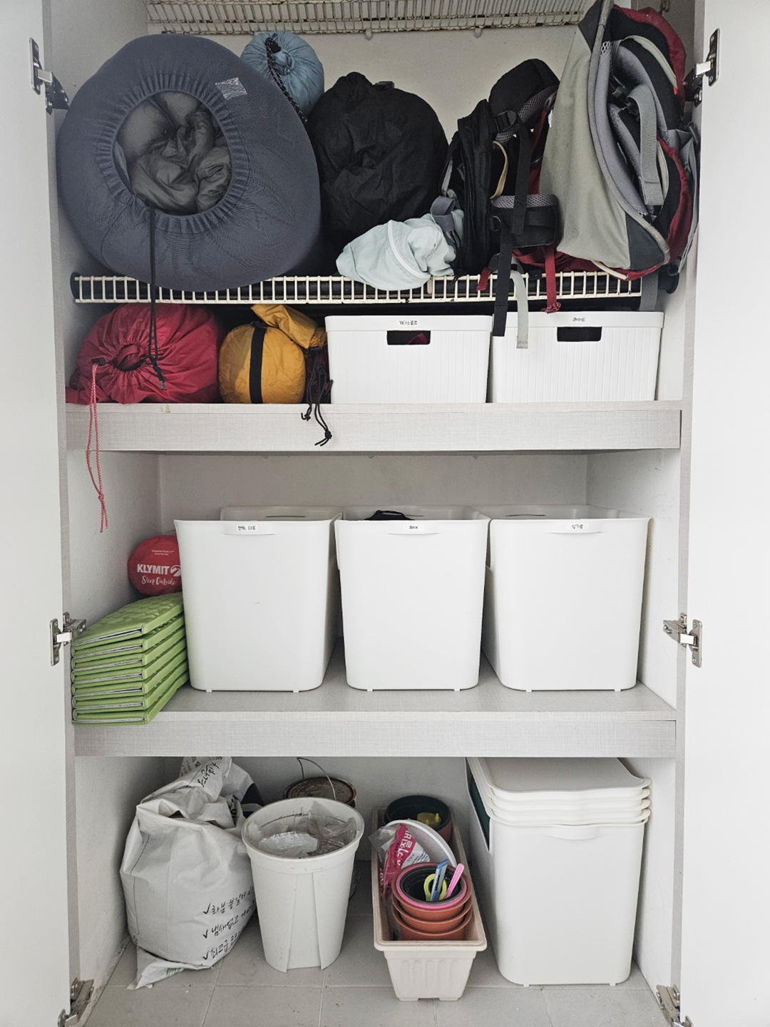 각종 잡동 사니가 쌓여 정리가 필요했던 팬트리 |