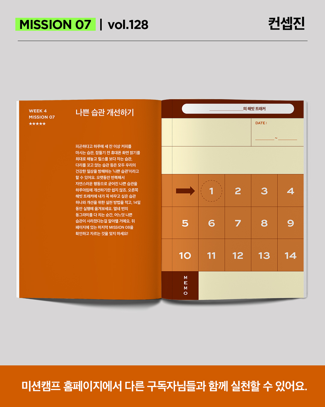 매주 2개씩 컨셉진 미션을 가볍게 실천하고